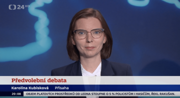 Karolína Kubisková, lídryně Přísahy v Kraji Vysočina, v předvolební debatě na České televizi